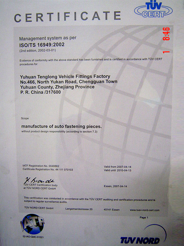 ISO/TS16949 Certificate